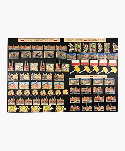 Oferujemy magnesy w kilkudziesięciu wzorach ogólnopolskich, polskich miast oraz atrakcji turystycznych.